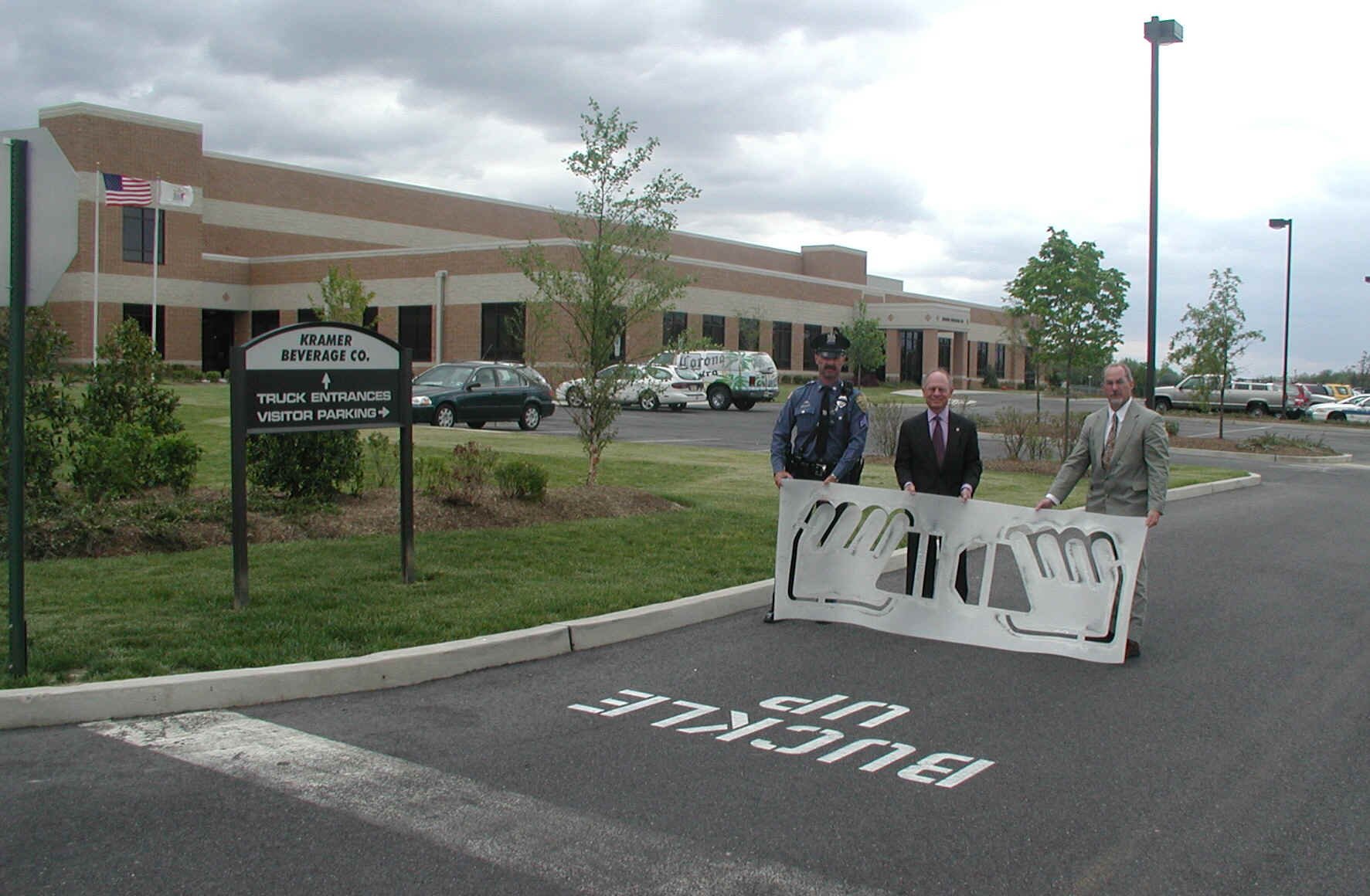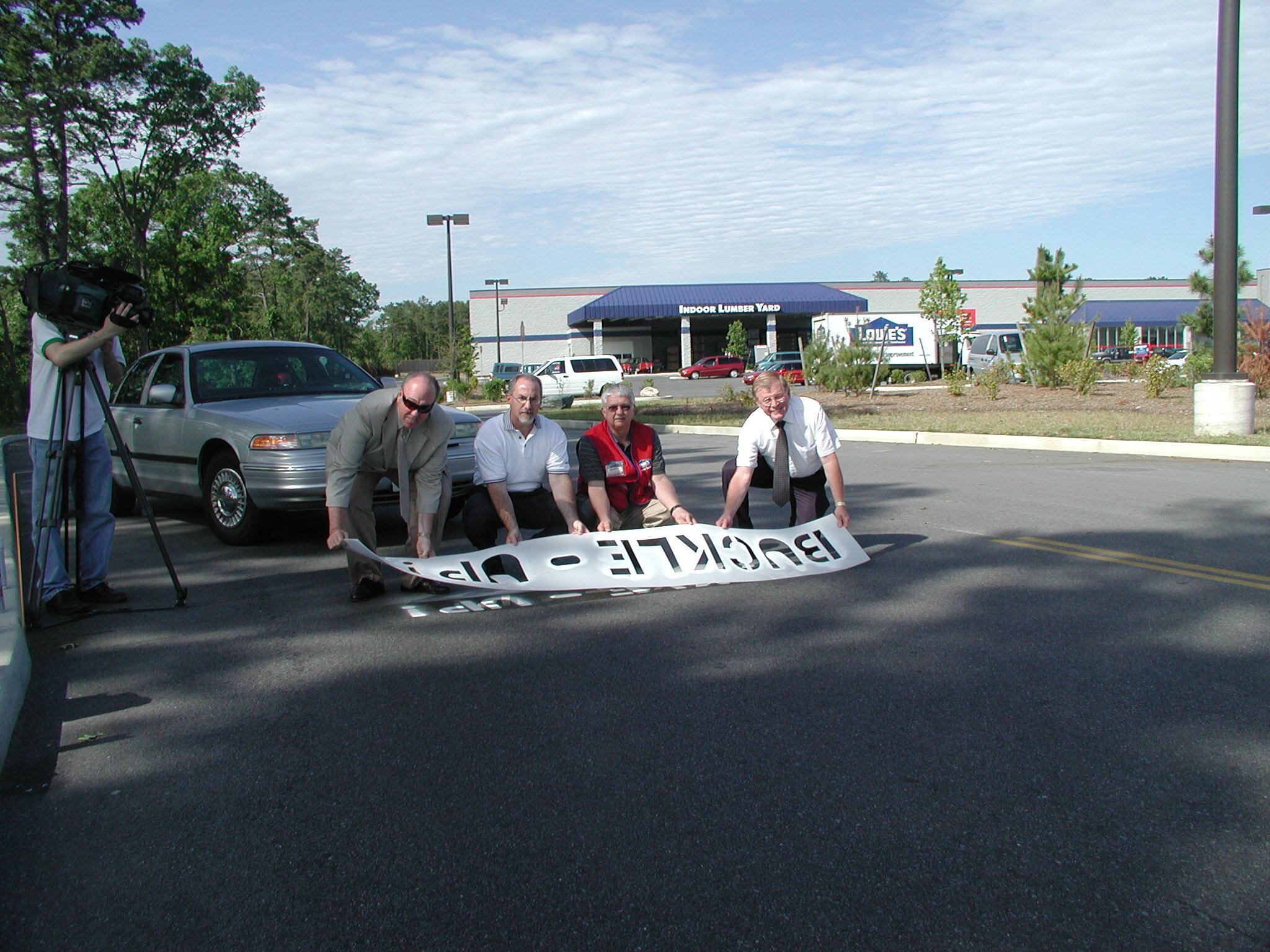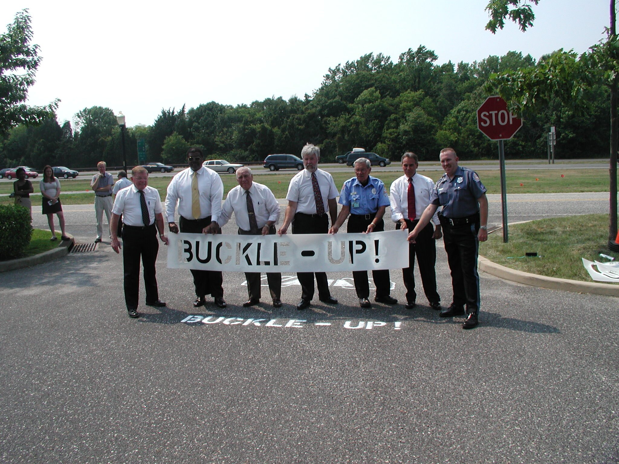 Cape May County Kick Off July 3, 2002 left to right: Lt Louis Raniszewski, CMC Sheriff’s Office and SJTSA Executive Board Member; Cape May County Acting Sheriff Raymond Lewis; Freeholder Ralph Sheets; Freeholder Director Danial Beyel; Joe Gariffo, CMC Security; Freeholder John Mruz; and Sgt Richard Washart, Ocean City Police Department and Alliance Executive Board Member. |