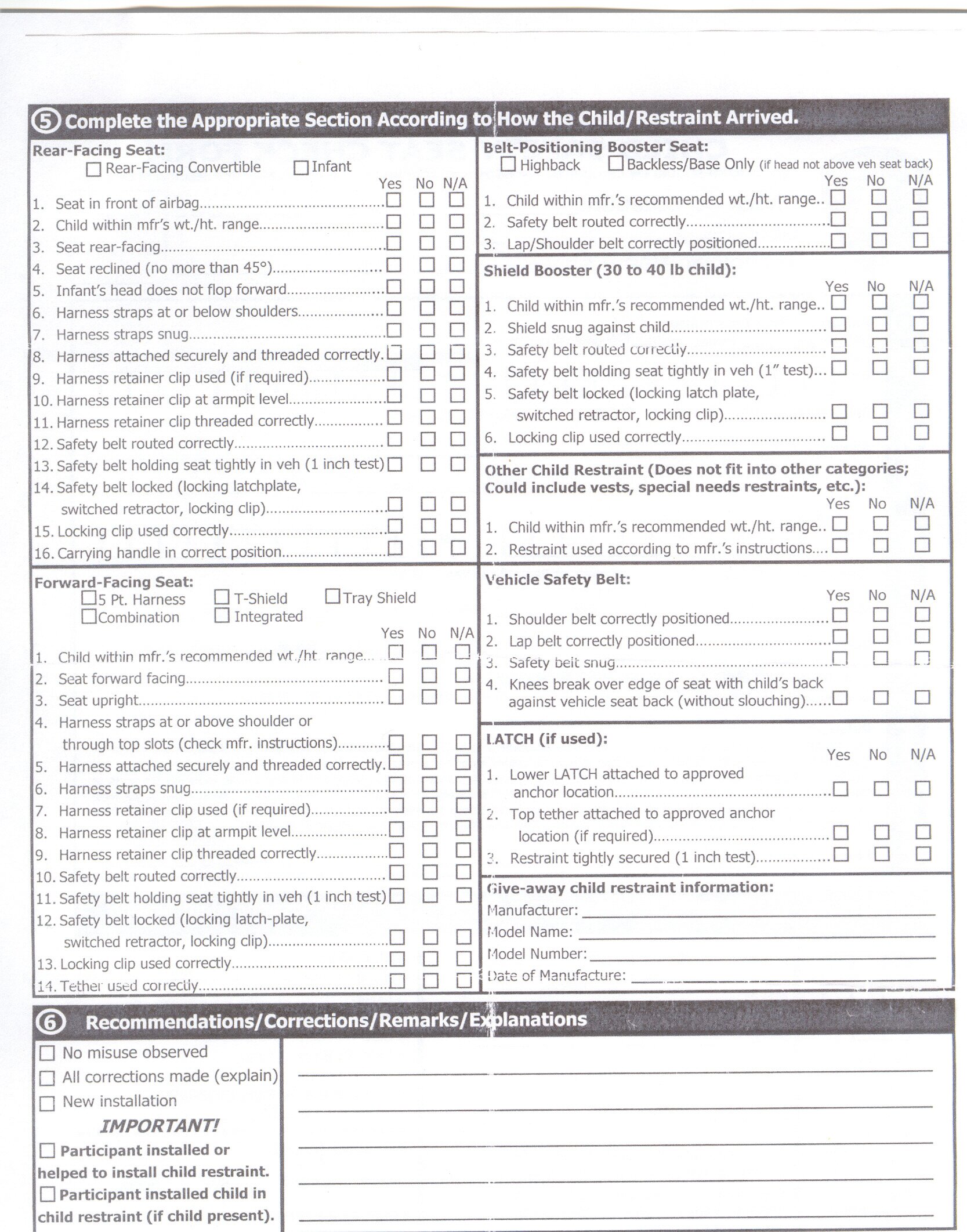 To make sure your child safety seat is installed correctly contact one of the certified technicians in your county or attend an Inspection Event.